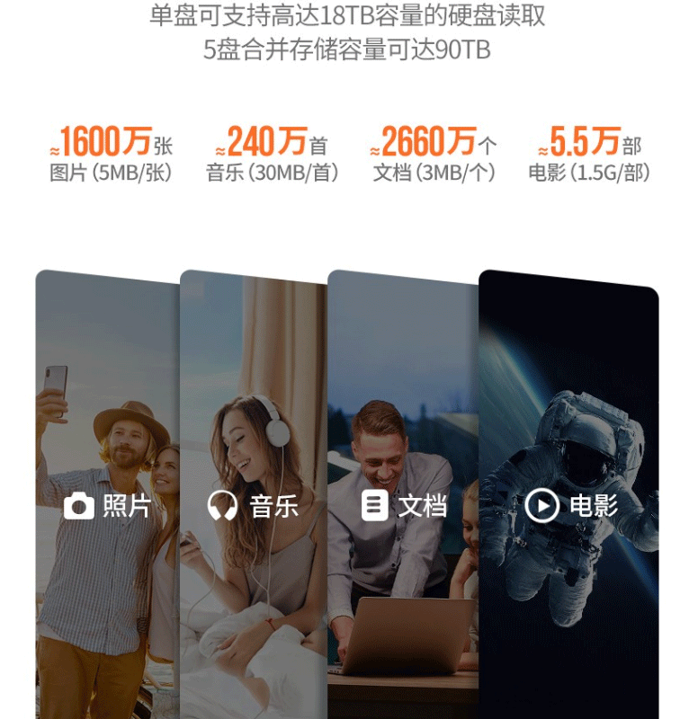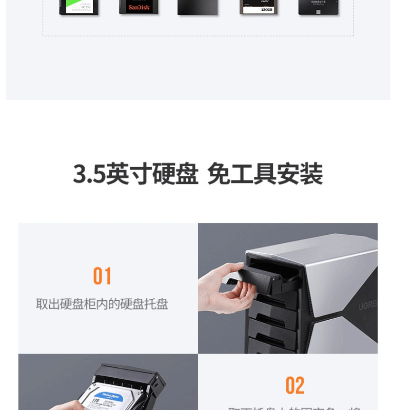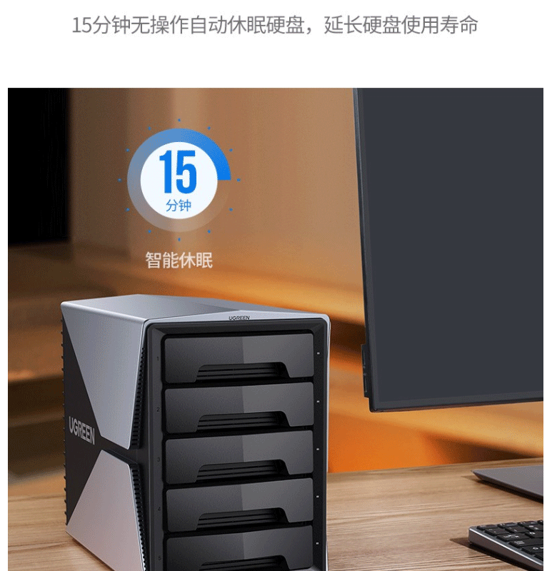 绿联 CM292 五盘位3.5英寸磁盘阵列盒 有RAID 70441
