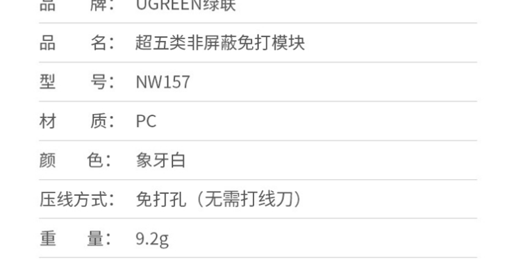 绿联 NW157 超五类免打网络模块 非屏蔽 80449