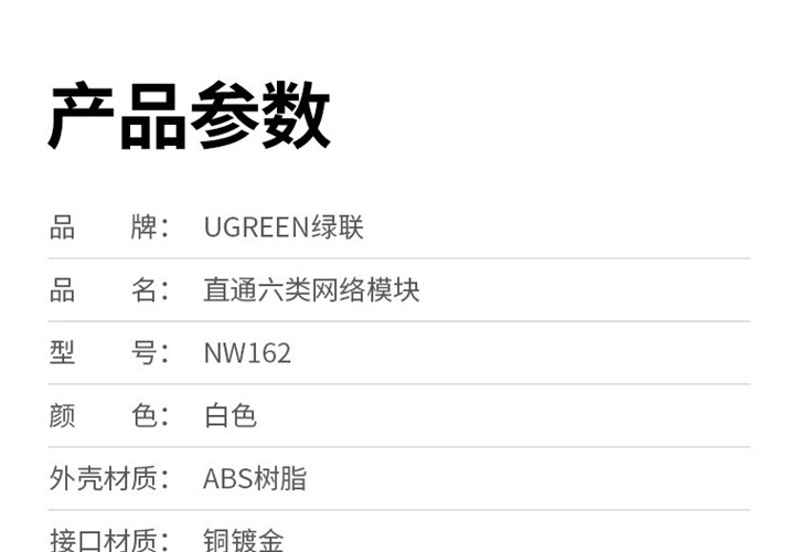 绿联 NW161 超五类非屏蔽直通模块 非屏蔽 80455