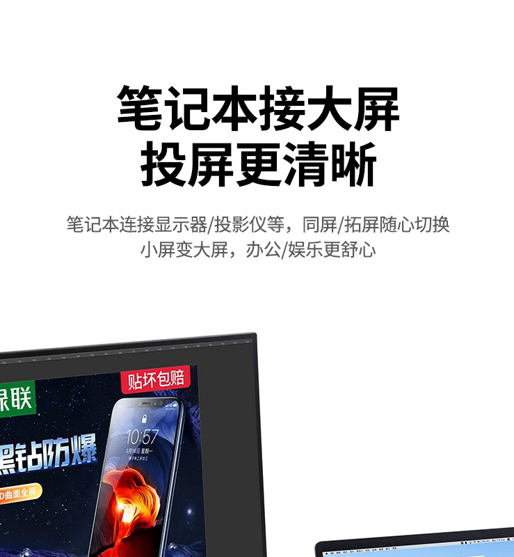 绿联 MM142 Type-C转HDMI转接头雷电3转换器线 (直头)1.5米 50570
