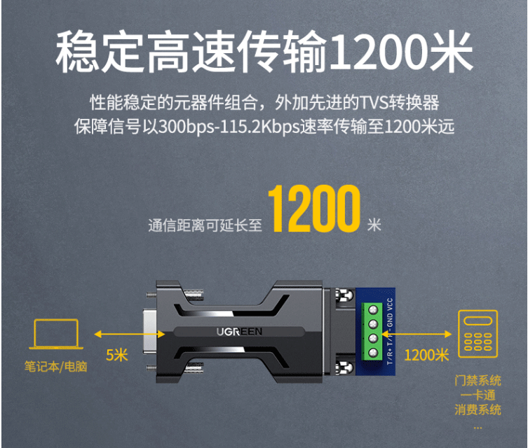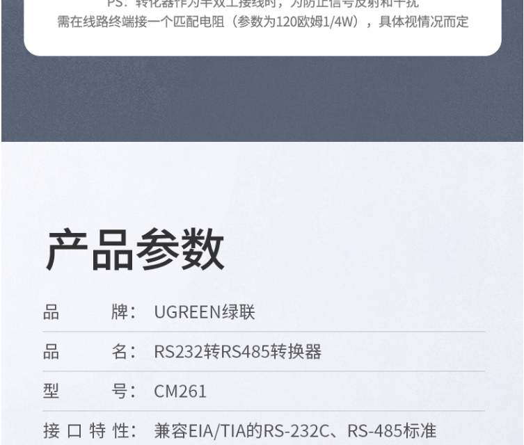 绿联 CM261 RS232转RS485串口转换器 工程级 70613