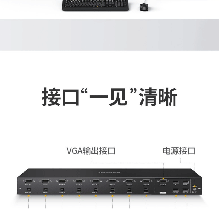 绿联 CM294 VGA 8进1出KVM切换器 70440