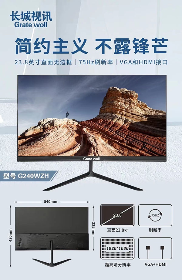 长城视讯 G240WZH 23.8寸 直面显示器 黑