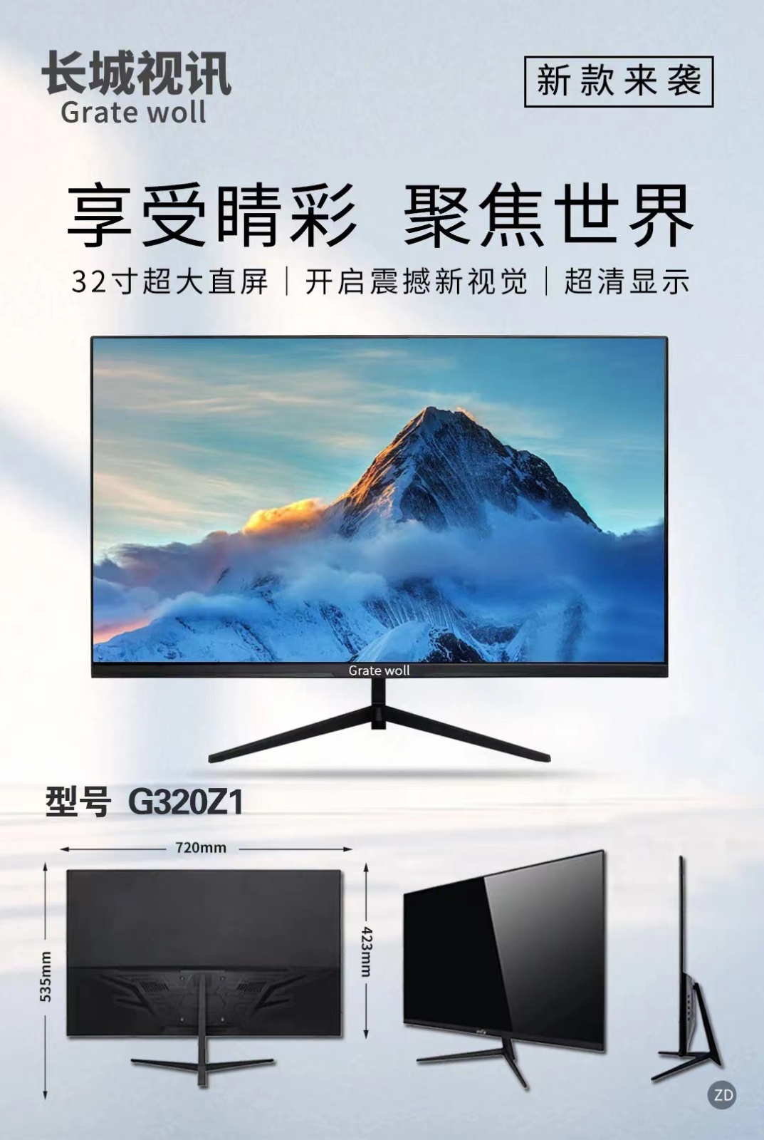 长城视讯 G320Z 32寸超窄边 直面 黑色 液晶显示器