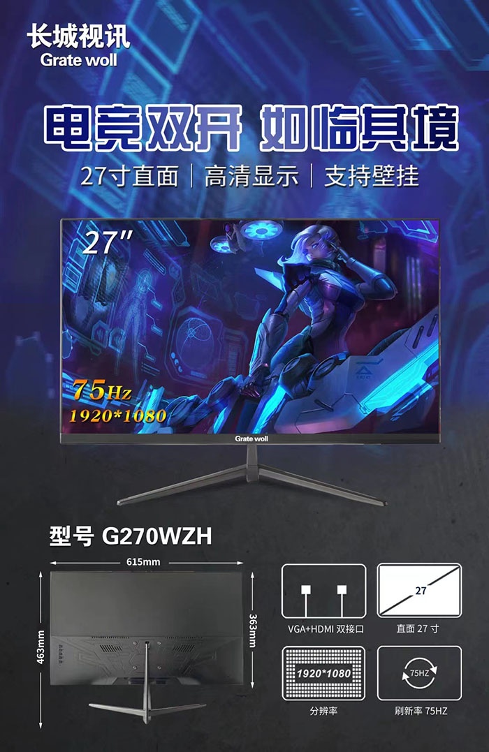长城视讯 G270WZH 27英寸 直面显示器 黑色
