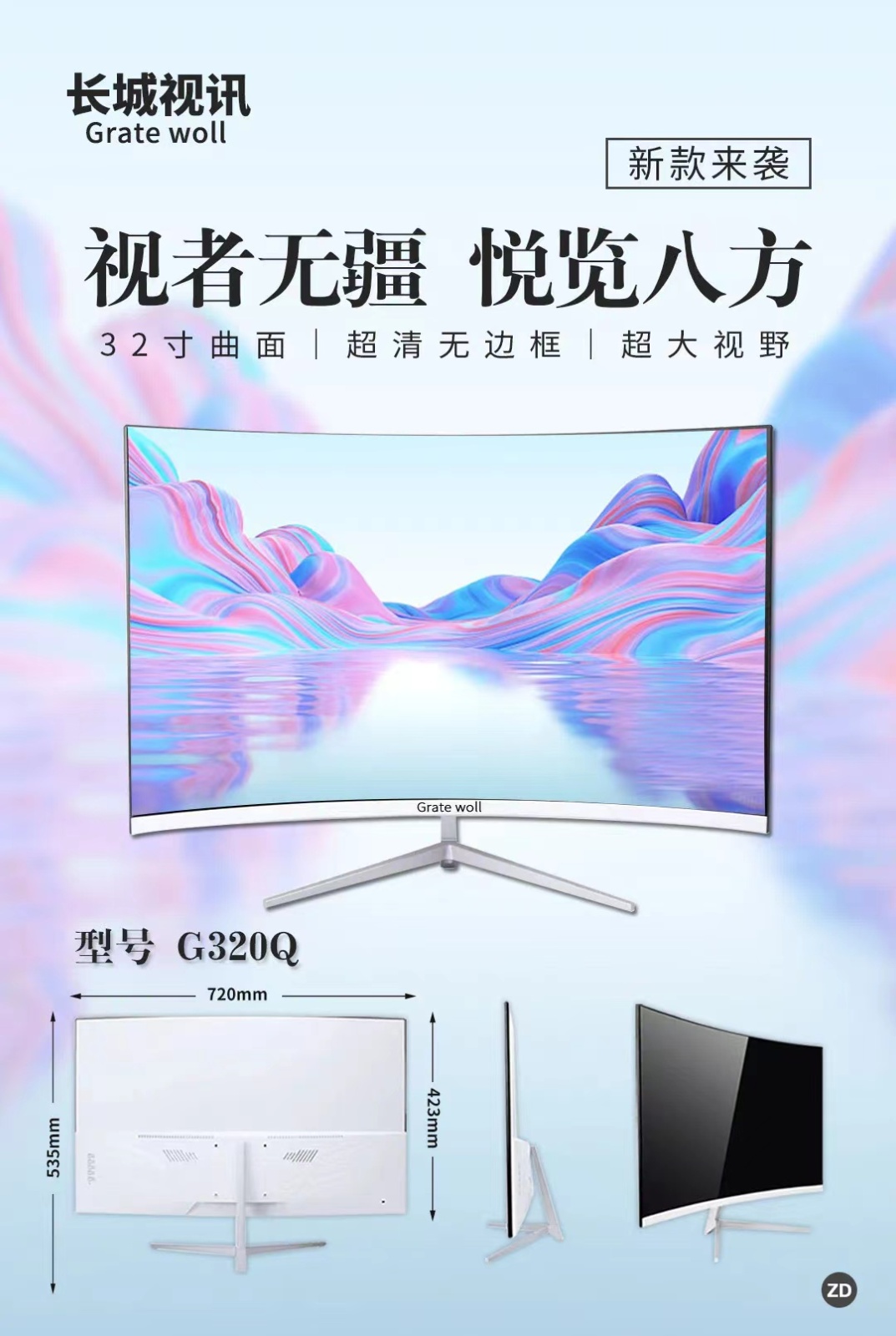 长城视讯 G320Q 32寸超窄边 曲面 白色 液晶显示器