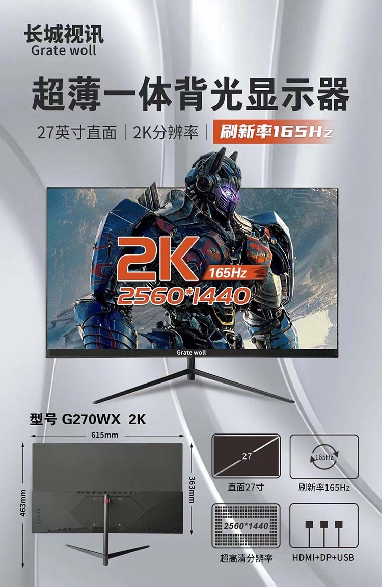 长城视讯 G270WX 27英寸 2K 165HZ直面显示器
