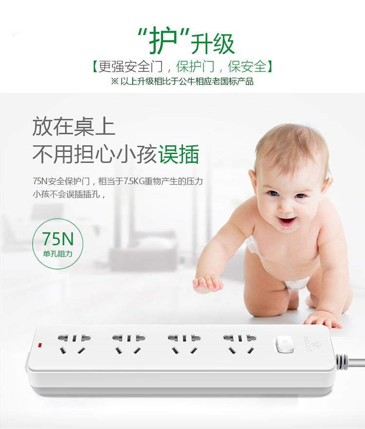 (4位 双插 带开关 10A 250V 1.0平方线)