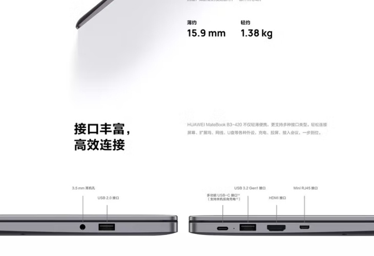 华为 MateBook B3-420( I5-1135G7/16G/512G/灰/高清屏/14/灰/战斗版)