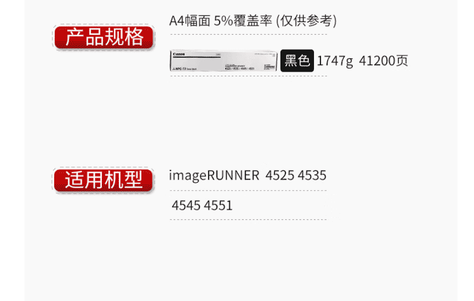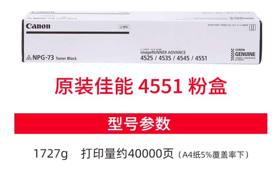 佳能 原装 NPG-73 黑色粉盒 适用于佳能IR-ADV4551/4545/4535/4525