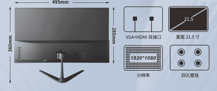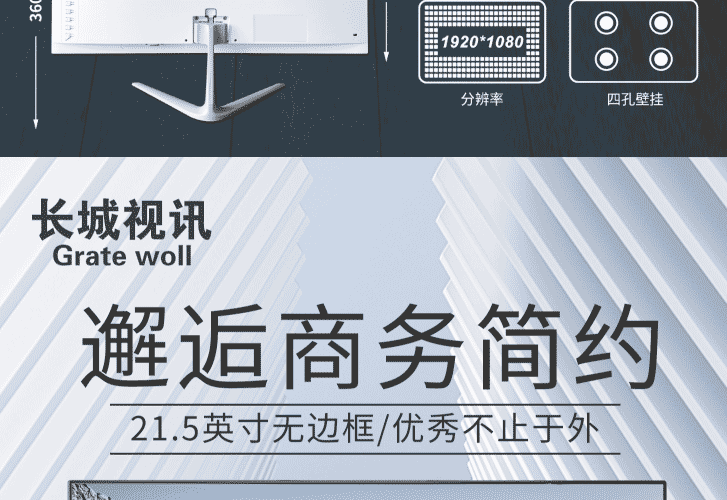 长城视讯 G220M 21.5寸 无边显示器 白色