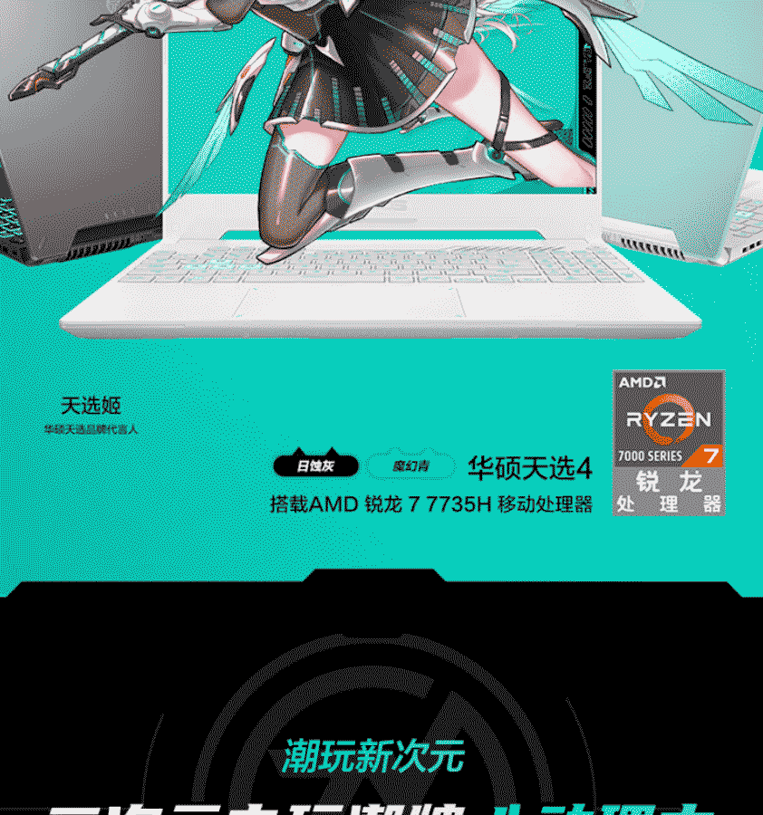 华硕 天选4游戏本(R7-7735H/16G/512/RTX4050-6G/ 高色域电竞屏/144Hz/高色域/日蚀灰)