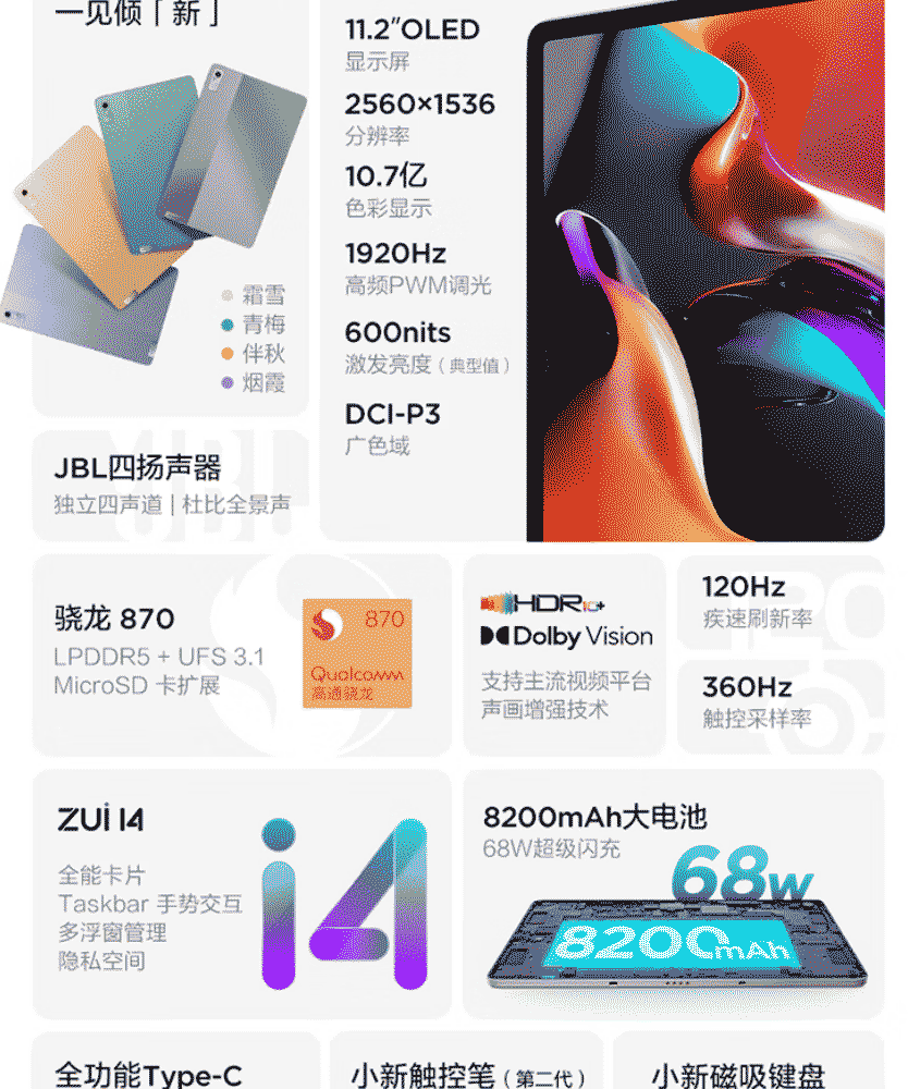 联想小新 Pad Pro 2022 TB132FU/6G+128G/wifi/11.2寸/琥珀金
