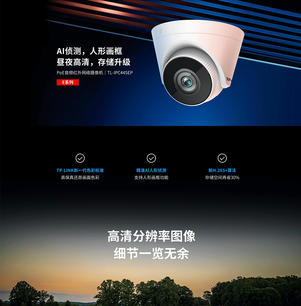 TP-Link TL-IPC445EP-6 400万 6MM PoE音频红外网络摄像机