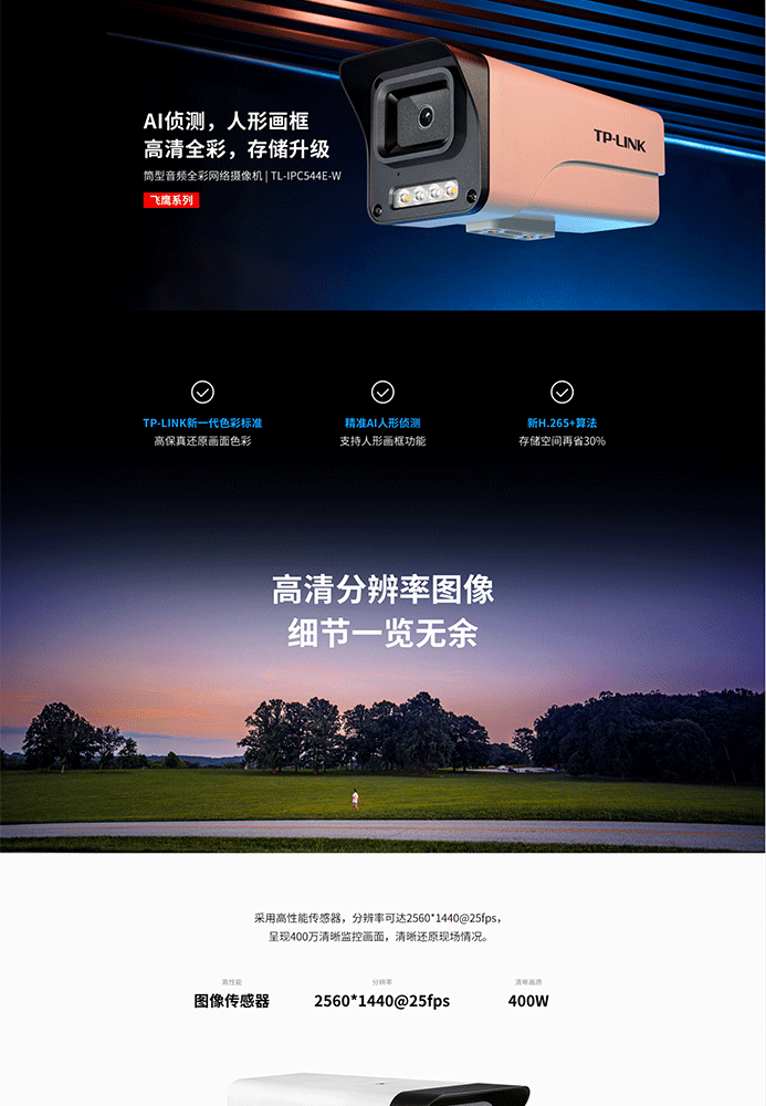 TP-Link TL-IPC544E-W 6mm 400万像素筒型音频双光网络摄像机 H.265+