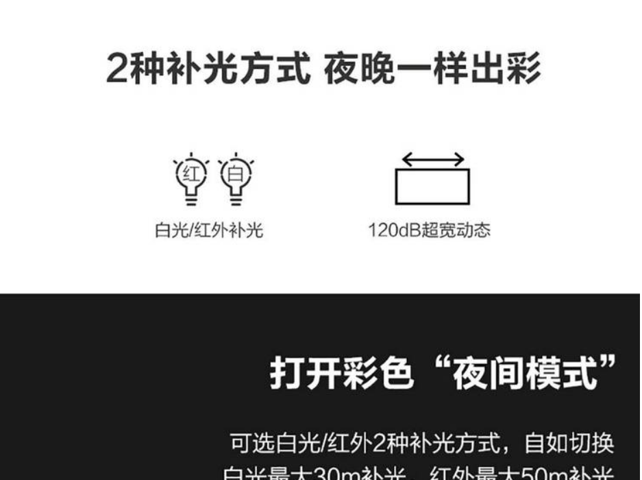 | 补光灯类型 | 默认白光,可切换红外补光 |