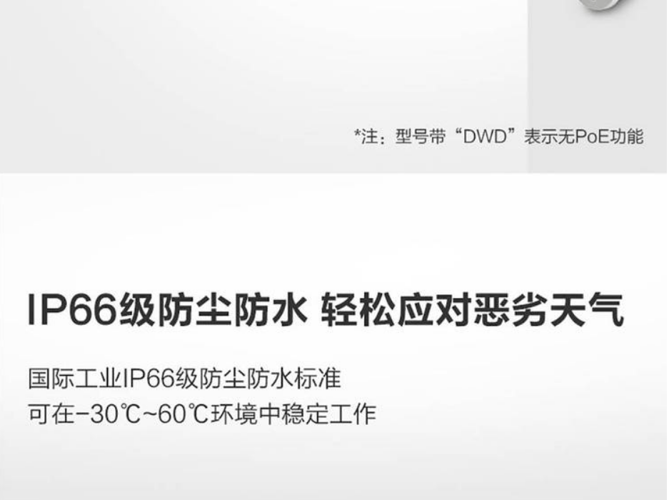 | DC | 12 V ± 25%,支持防反接保护 PoE 802.3af,Class 3 *DWD型号不支持PoE |