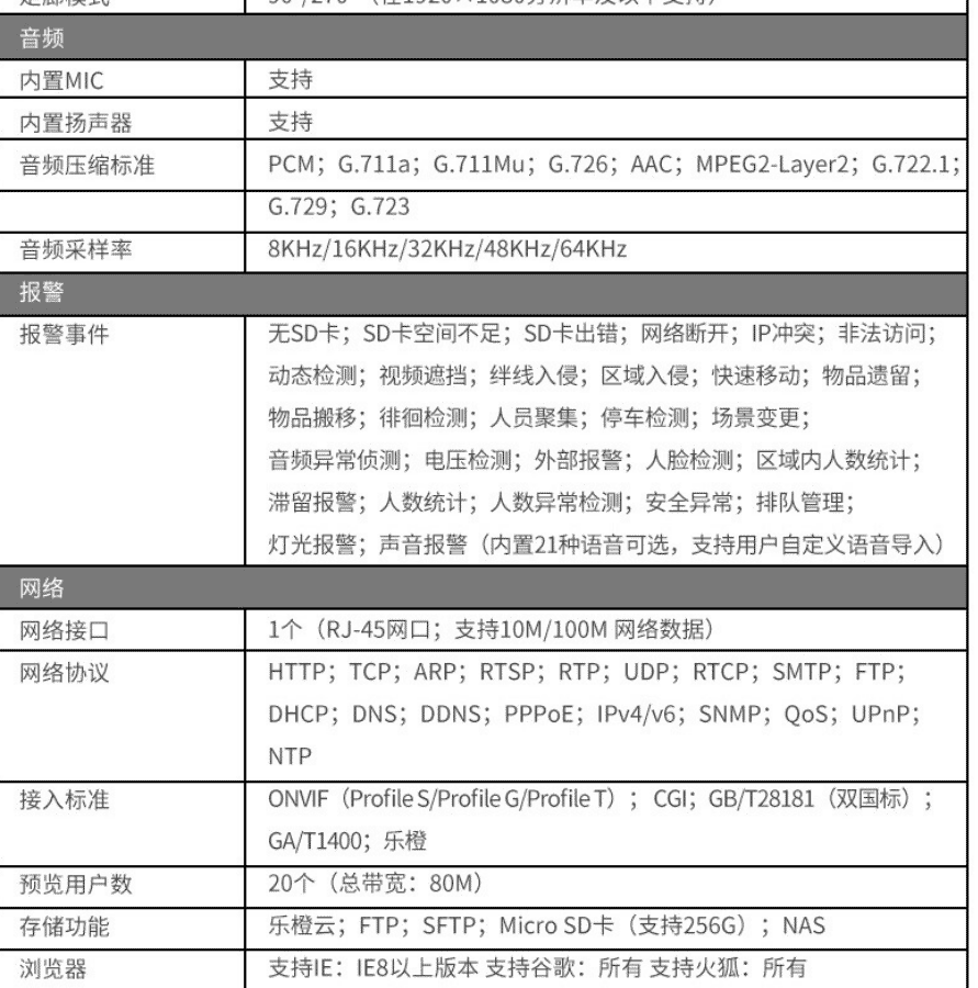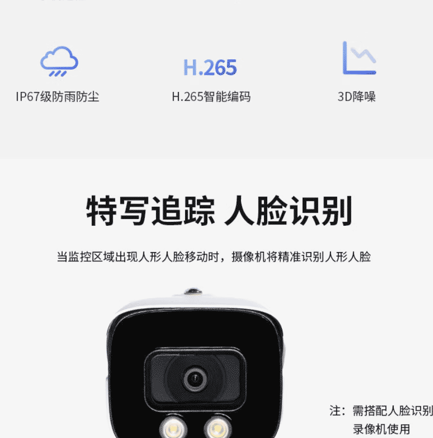 1080P/H265存储减半/音频对讲/白光智能警戒/poe供电/人脸抓拍/支持内存卡存储