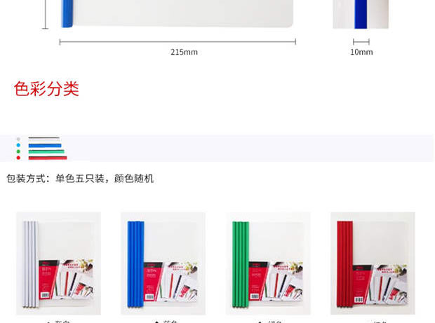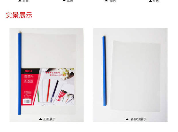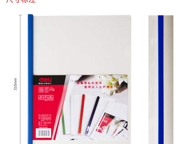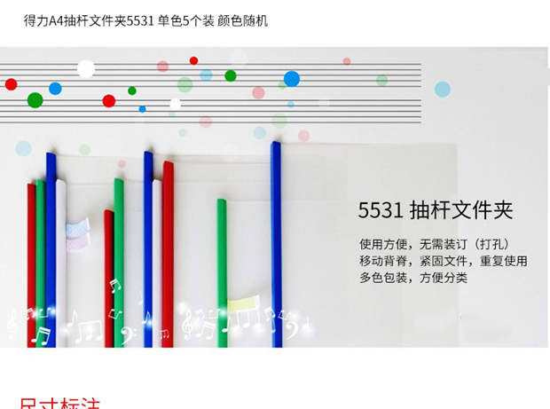 得力5531 A4彩色透明拉杆PP文件夹/报告夹(白)(5个/包) 抽杆夹