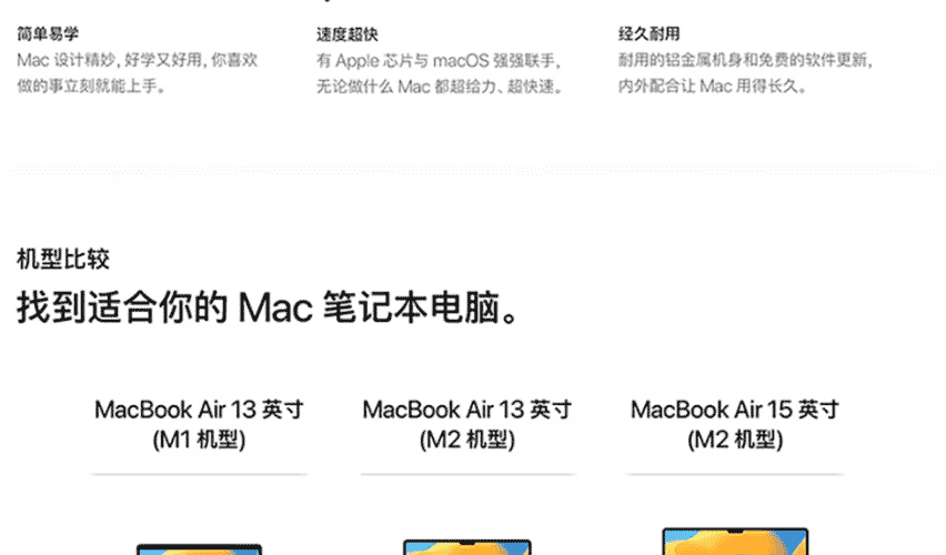 | 包装清单 | 15 英寸 MacBook Air 35W 双 USB-C 端口小型电源适配器 USB-C 转 MagSafe 3 连接线 (2 米) |