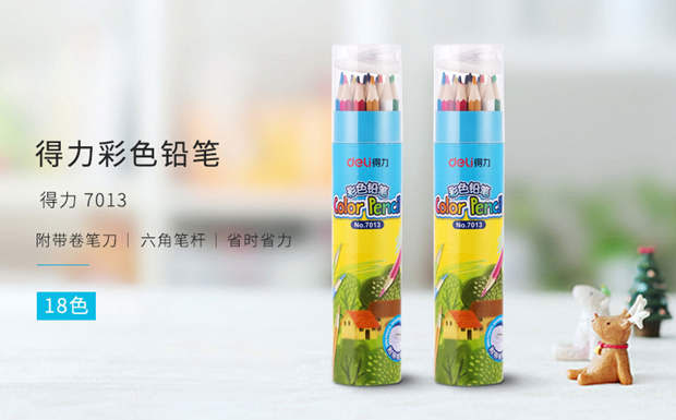 得力优酷7013彩色铅笔(混)(18支/桶)