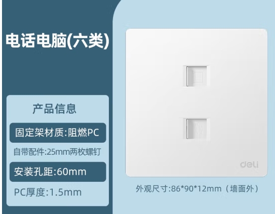 得力 LX906-27B 电话电脑(六类) CPP袋装(珍珠白)(个)