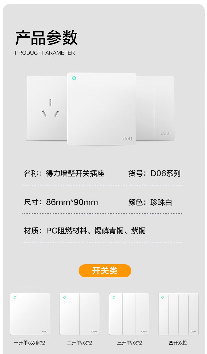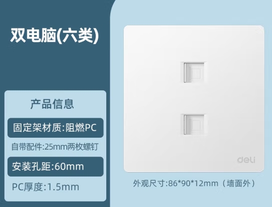 得力 LX906-23B 双电脑(六类) CPP袋装(珍珠白)(个)