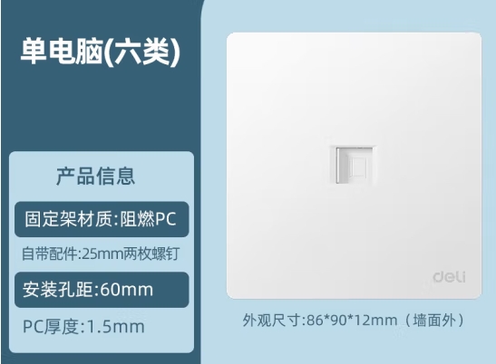 得力 LX906-22B 单电脑(六类) CPP袋装(珍珠白)(个)