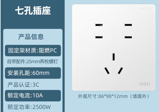 得力 LX906-13B 七孔插座 CPP袋装(珍珠白)(个)