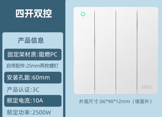 得力 LX906-10B 四开双控开关 CPP袋装(珍珠白)(个)