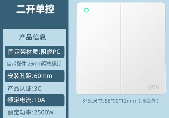 得力 LX906-04B 二开单控开关 CPP袋装(珍珠白)(个)