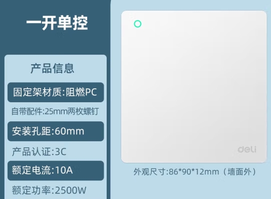 得力 LX906-01B 一开单控开关 CPP袋装(珍珠白)(个)